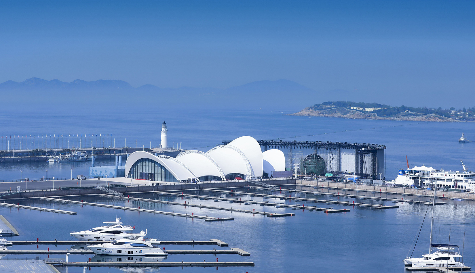 本項(xiàng)目在保留原有建筑主體結(jié)構(gòu)的基礎(chǔ)上,結(jié)合本次會(huì)議活動(dòng)的相關(guān)需求,對(duì)其規(guī)模、形象、功能進(jìn)行改造提升。主題材料采用輕盈的鋼結(jié)構(gòu)與膜結(jié)構(gòu),造型宛如海浪中靈動(dòng)的風(fēng)帆,彰顯青島這座海洋名稱、帆船之都的獨(dú)特魅力。