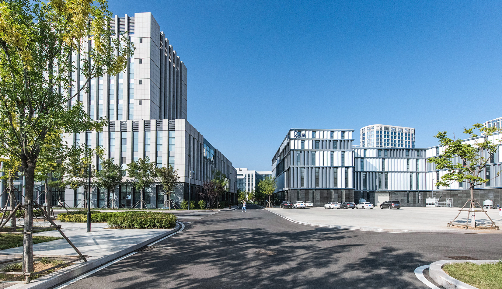 建筑主要采用白色基調(diào),以減輕日曬,部分裙房采用大理石面磚,以增加建筑的莊重性。