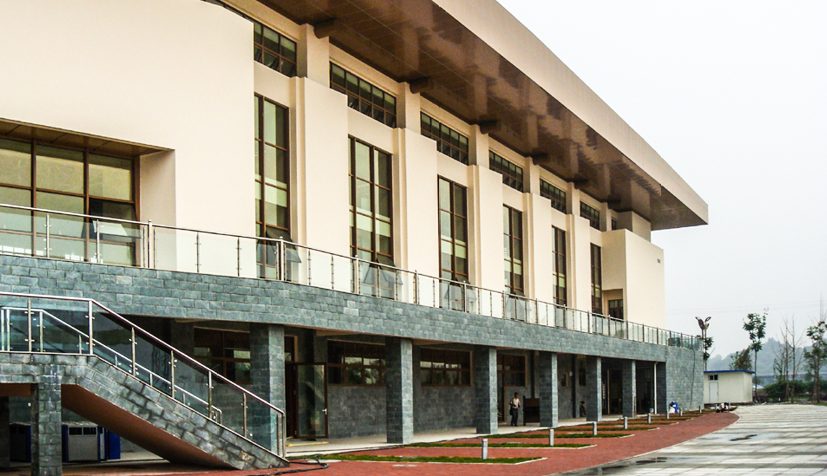 北川羌族自治縣體育中心位于新縣城南端的95 號街坊內(nèi),用地面積5.6 公頃,現(xiàn)狀地形平坦。北側(cè)為濱河路,毗鄰永昌河公園景觀帶,西側(cè)為禹龍路,隔路與安昌河相望,東側(cè)為貫穿新縣城的交通干道- 齊魯大道,用地四周環(huán)路,交通便利,地處北川新縣城的南門戶,是進入縣城的標(biāo)志性建筑。