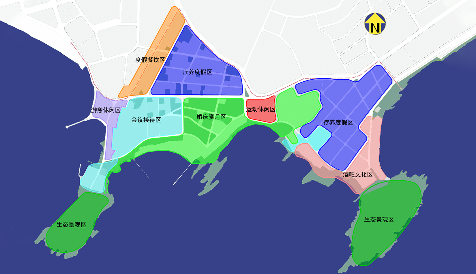 秉持:“整體性積極保護(hù)、減法為主、功能提升、公眾開放”的原則,整飭形成度假餐飲、游憩休閑、會議接待、婚慶蜜月、運(yùn)動休閑、酒吧文化、療養(yǎng)度假與生態(tài)景觀區(qū)。