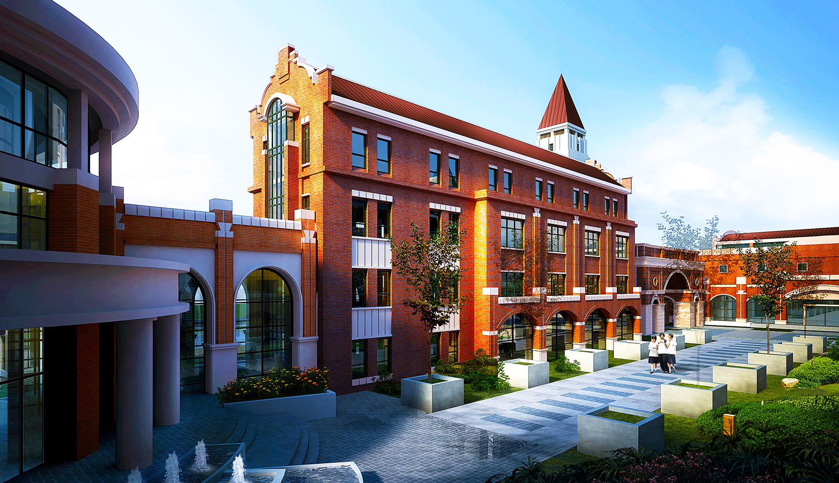 青島經(jīng)濟技術(shù)開發(fā)區(qū)實驗初級中學(xué)位于青島市經(jīng)濟技術(shù)開發(fā)區(qū)富春江路南側(cè),峨眉山路西側(cè)地塊。用地面積44579.16 ㎡ ,校建制為36個班的初級中學(xué),可容納1800 人,投資1.5 億元。學(xué)校功能包含辦公樓、普通學(xué)校及輔助教學(xué)樓、圖書閱覽室、綜合電教室、教師宿舍、食堂、體育活動室及運動場,總建筑面積23506.13 ㎡ 。學(xué)校秉承文化傳承、素質(zhì)培養(yǎng)的設(shè)計理念,建有全塑標(biāo)準(zhǔn)化400 米環(huán)形運動場、籃球場、體育館以及全區(qū)普通中小學(xué)唯一的標(biāo)準(zhǔn)游泳池;建有理化實驗室、微機教室、綜合實驗室、生物園、機器人教室和天文臺、生命科學(xué)教室等功能教室,是一所按照“全國千所示范性初中標(biāo)準(zhǔn)”要求建設(shè)的初級中學(xué)。